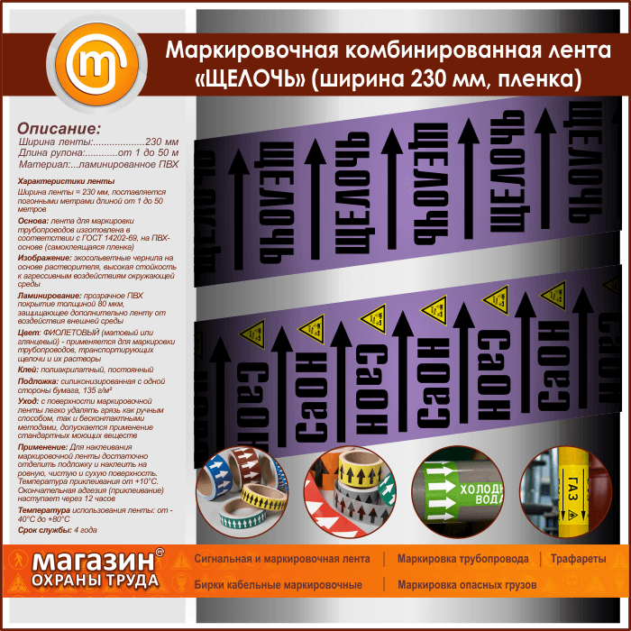 Маркировочная комбинированная лента «ЩЕЛОЧЬ» (ширина 230 мм, самоклеящаяся плёнка) в Альметьевске купить