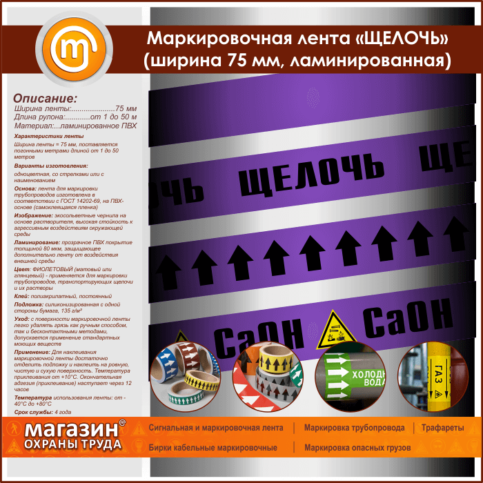 Маркировочная лента «ЩЕЛОЧЬ» (ширина 75 мм, самоклеящаяся плёнка с ламинированием) в Альметьевске купить