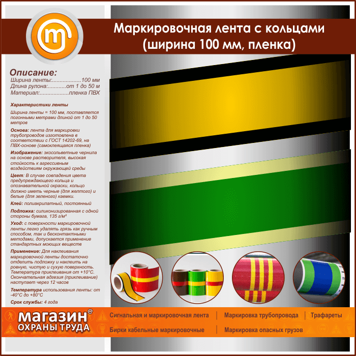 Маркировочная лента с кольцами (ширина 100 мм, самоклеящаяся плёнка) в Альметьевске купить