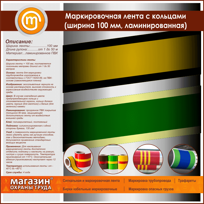Маркировочная лента с кольцами (ширина 100 мм, самоклеящаяся плёнка с ламинированием) в Альметьевске купить