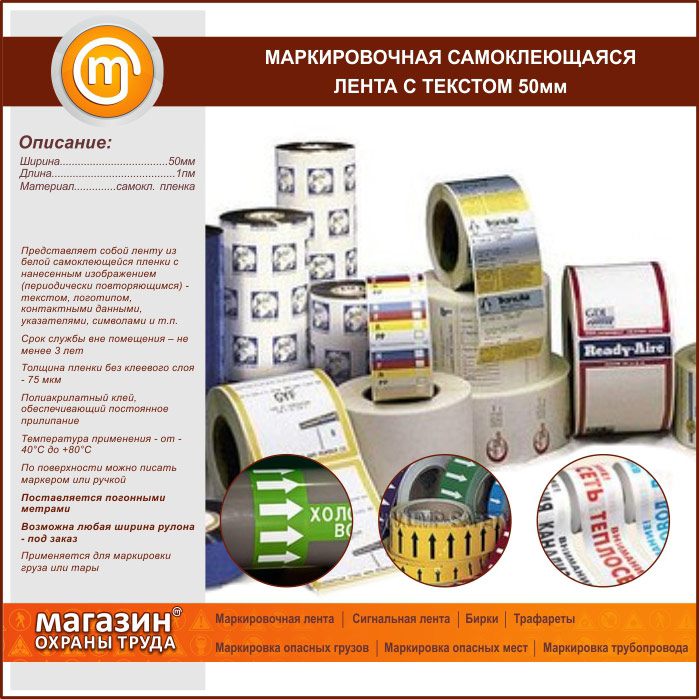 Маркировочная самоклеящаяся лента с текстом 50 мм в Альметьевске купить