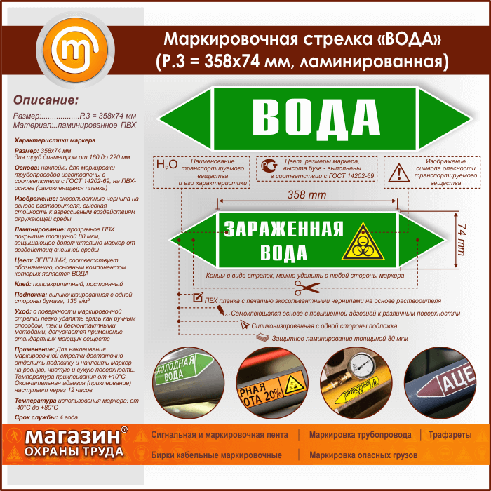 Маркировочная стрелка «ВОДА» (P.3 = 358х74 мм, самоклеящаяся плёнка с ламинированием) в Альметьевске купить