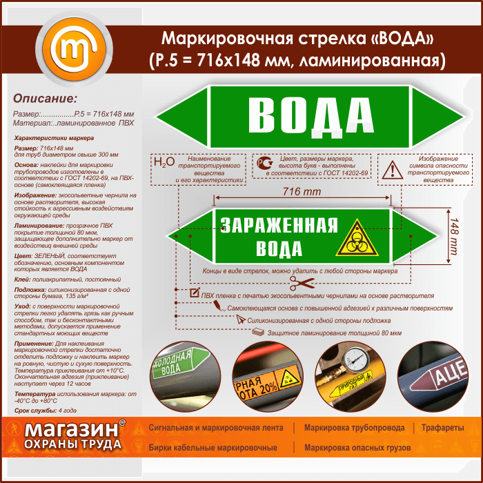 Маркировочная стрелка «ВОДА» (P.5 = 716х148 мм, самоклеящаяся плёнка с ламинированием) в Альметьевске купить