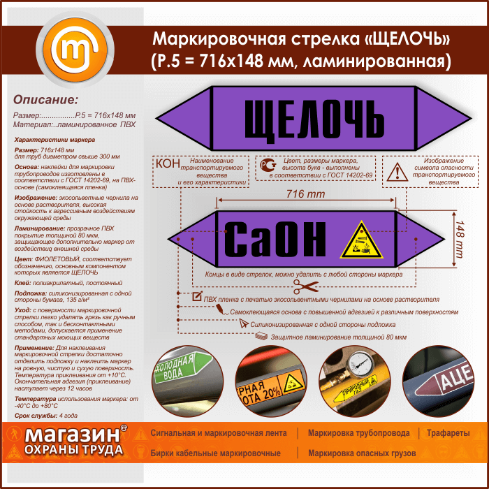 Маркировочная стрелка «ЩЕЛОЧЬ» (P.5 = 716х148 мм, самоклеящаяся плёнка с ламинированием) в Альметьевске купить