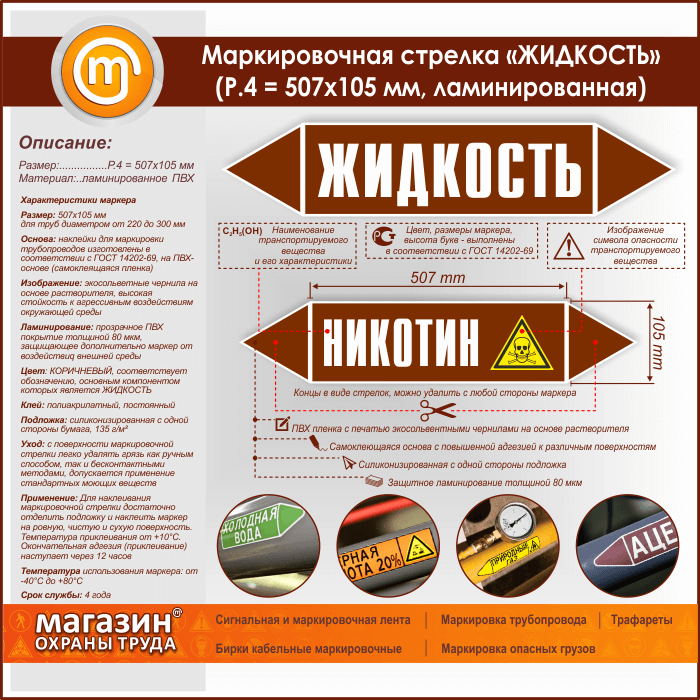 Маркировочная стрелка «ЖИДКОСТЬ»(P.4 = 507х105 мм, самоклеящаяся плёнка с ламинированием) в Альметьевске купить