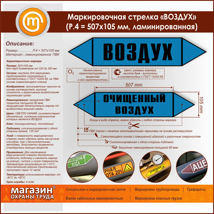 Маркировочная стрелка «ВОЗДУХ» (P.4 = 507х105 мм, самоклеящаяся плёнка с ламинированием) в Альметьевске купить