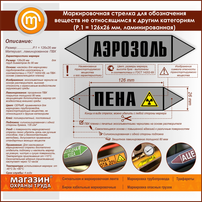 Маркировочная стрелка «ПРОЧИЕ ВЕЩЕСТВА» (Р.1 = 126х26 мм, самоклеящаяся плёнка с ламинированием) в Альметьевске купить