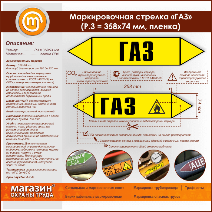Маркировочная стрелка «ГАЗ» (P.3 = 358х74 мм, самоклеящаяся плёнка) в Альметьевске купить