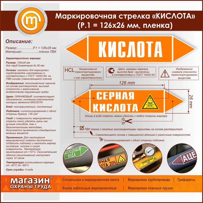 Маркировочная стрелка «КИСЛОТА» (Р.1 = 126х26 мм, самоклеящаяся плёнка) в Альметьевске купить