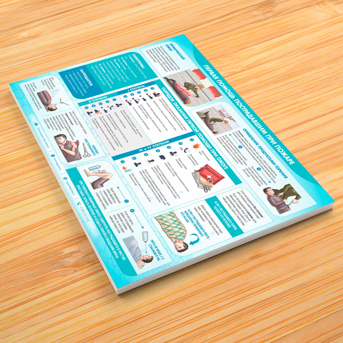 Плакат «Первая помощь пострадавшим при пожаре» (М-22, ламинированная бумага, А2, 1 лист) в Альметьевске купить