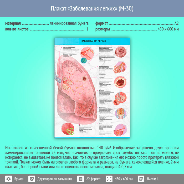 Плакат «Заболевания легких» (М-30, ламинированная бумага, А2, 1 лист) в Альметьевске купить