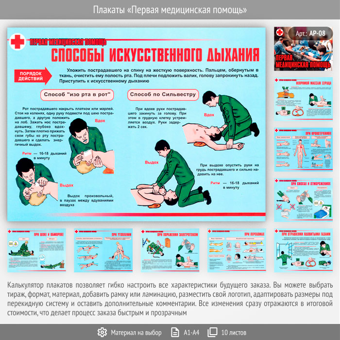 Плакаты «Первая медицинская помощь» (АР-08, 10 листов) в Альметьевске купить