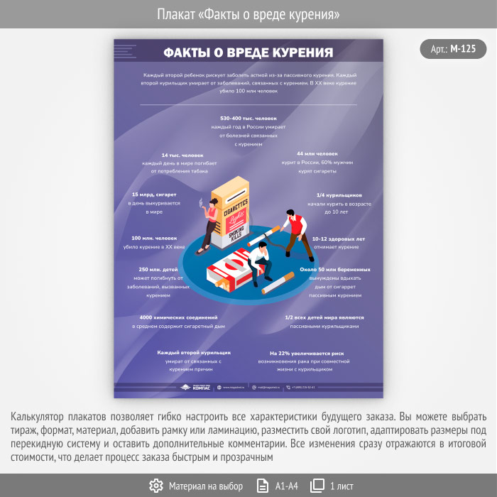 Плакат «Факты о вреде курения» (М-125, 1 лист) в Альметьевске купить
