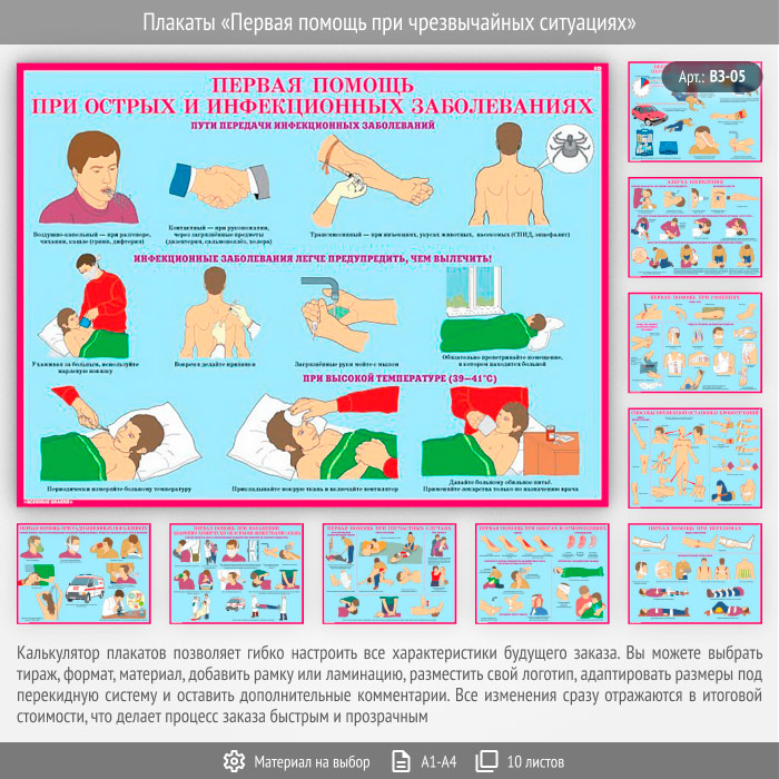 Плакаты «Первая помощь при чрезвычайных ситуациях» (ВЗ-05, 10 листов) в Альметьевске купить