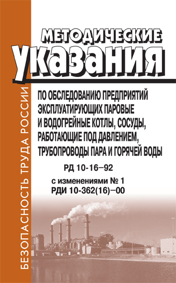 Методические указания по обследованию предприятий, эксплуатирующих паровые и водогрейные котлы, сосуды, работающие под давлением, трубопроводы пара и горячей воды. РД 10-16-92 (ЛД-112) в Альметьевске купить