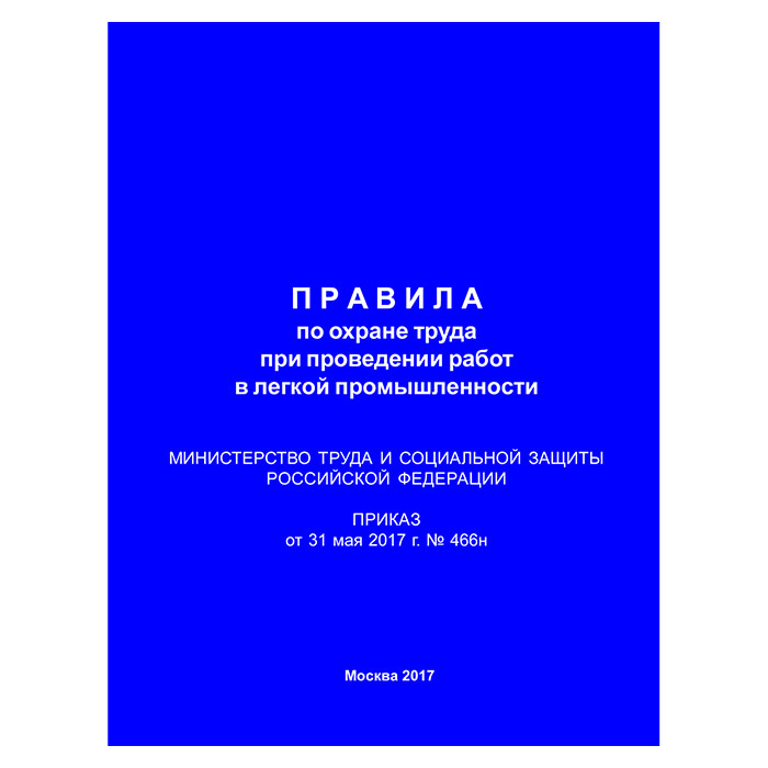 Правила по охране труда при проведении работ в легкой промышленности (Приказ Минтруда РФ от 31.05.2017 № 466н) (ЛАП-26) в Альметьевске купить