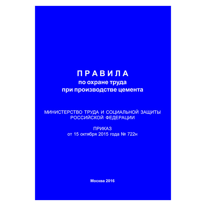 Правила по охране труда при производстве цемента (Приказ Минтруда РФ от 15.10.2015 № 722н) (ЛАП-28) в Альметьевске купить