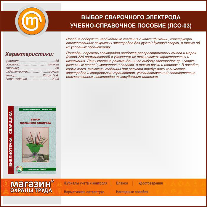 Выбор сварочного электрода – учебно-справочное пособие (ЛСО-03) в Альметьевске купить