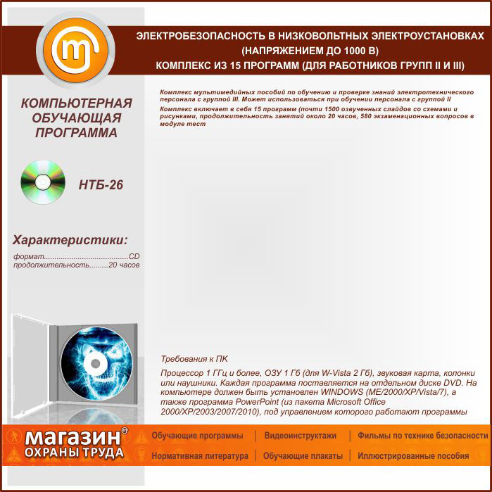«Электробезопасность в низковольтных электроустановках (напряжением до 1000 В)», комплекс из 15 обучающих программ (для работников групп II и III) в Альметьевске купить