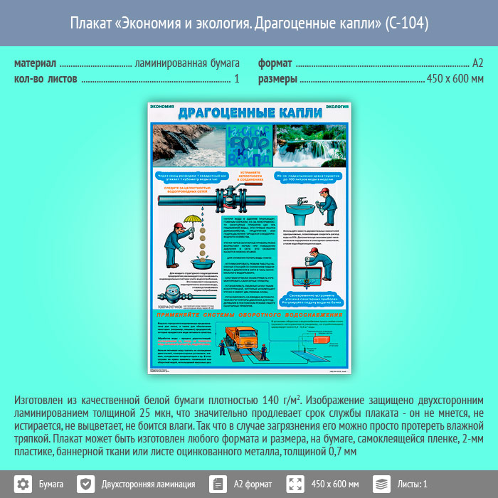 Плакат «Экономия и экология. Драгоценные капли» (С-104, ламинированная бумага, А2, 1 лист) в Альметьевске купить