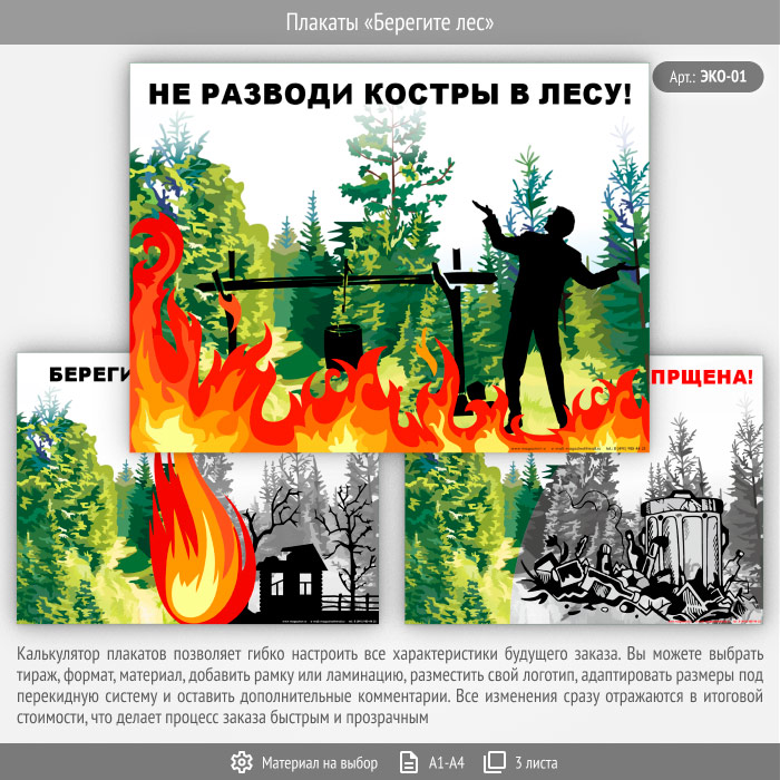 Плакаты «Берегите лес» (ЭКО-01, 3 листа) в Альметьевске купить