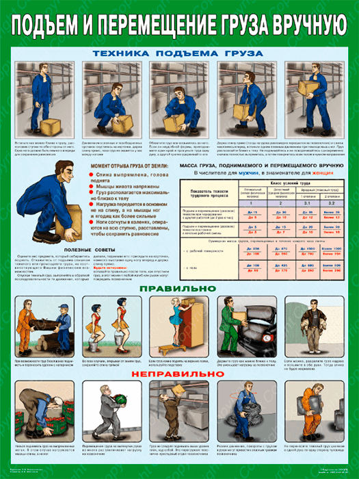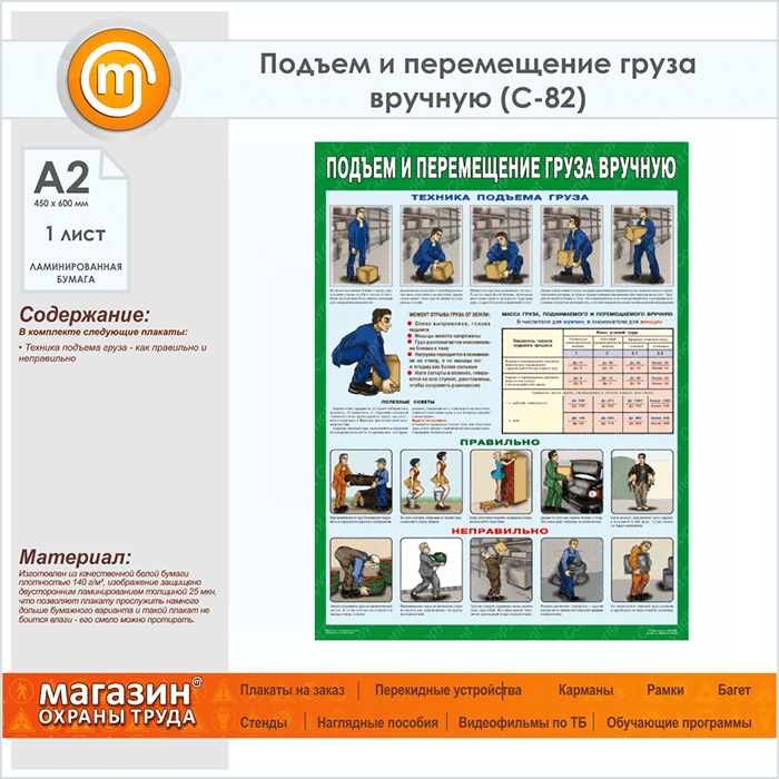 Плакат «Правила перемещения грузов вручную» (С-82, ламинированная бумага, А2, 1 лист) в Альметьевске купить