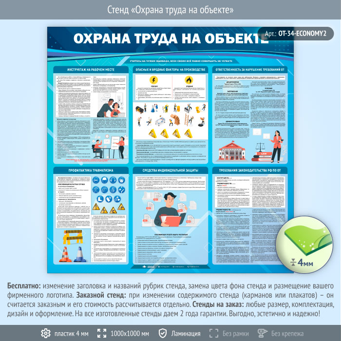 Стенд «Охрана труда на объекте» (OT-34-ECONOMY2) в Альметьевске купить