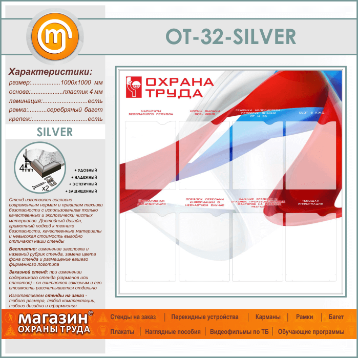 Стенд «Охрана труда» с 8 карманами (OT-32-SILVER) в Альметьевске купить