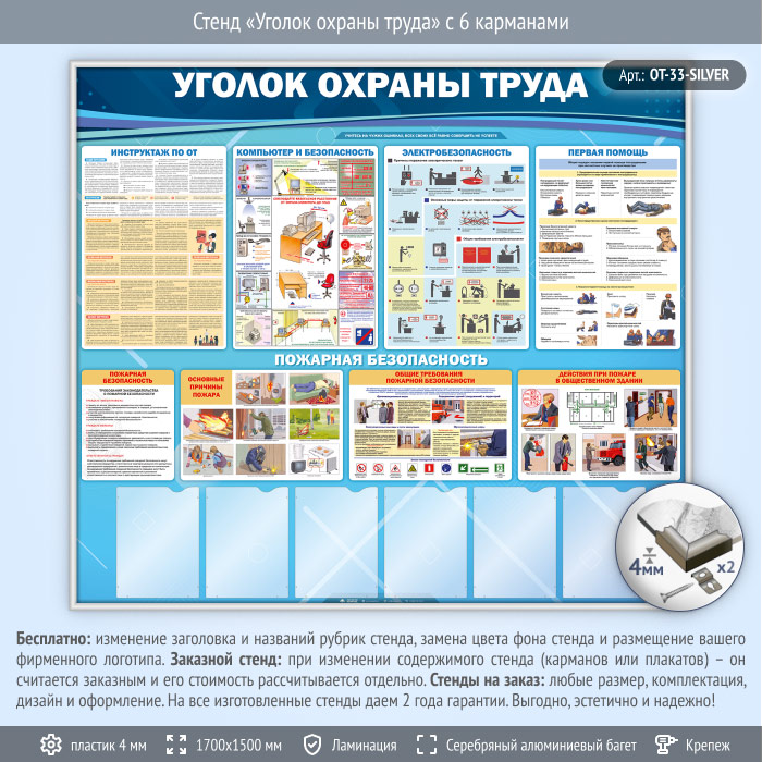 Стенд «Уголок охраны труда» с 6 карманами (OT-33-SILVER) в Альметьевске купить