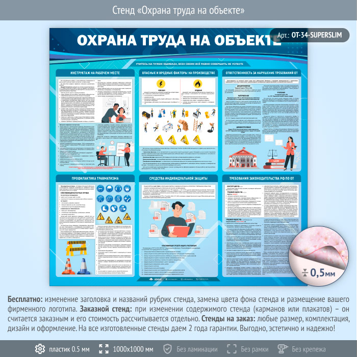 Стенд «Охрана труда на объекте» (OT-34-SUPERSLIM) в Альметьевске купить