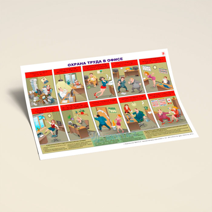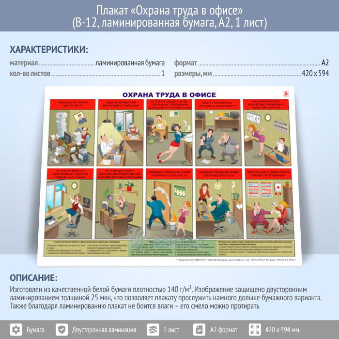 Плакат «Охрана труда в офисе» (В-12, ламинированная бумага, А2, 1 лист) в Альметьевске купить