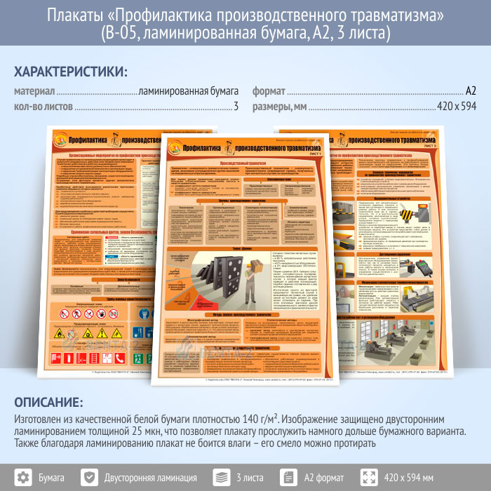 Плакаты «Профилактика производственного травматизма» (В-05, ламинированная бумага, А2, 3 листа) в Альметьевске купить