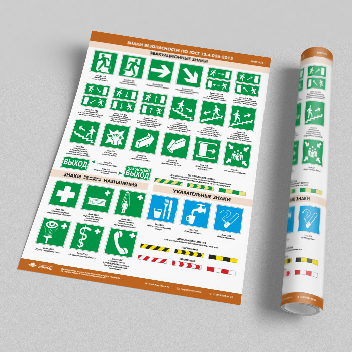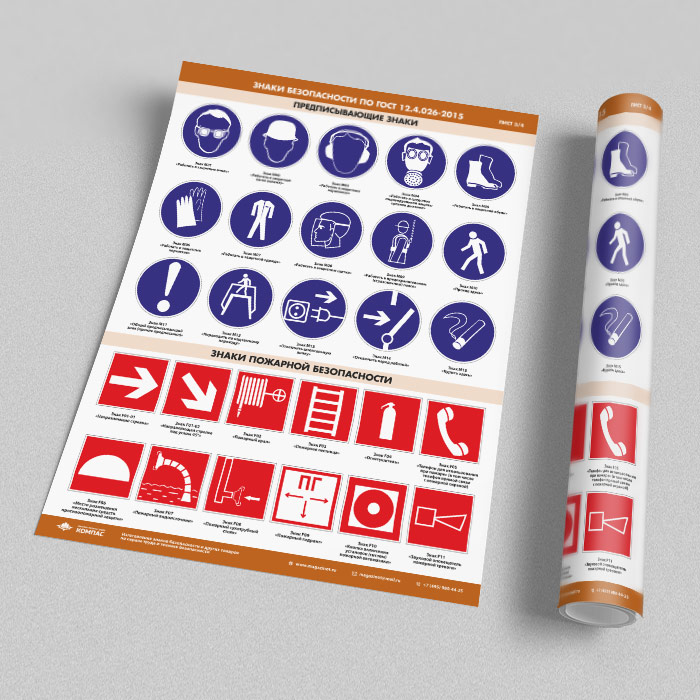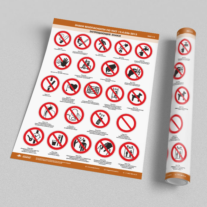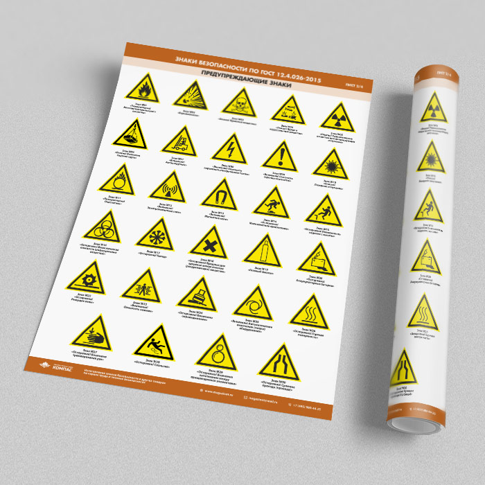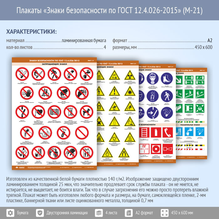 Плакаты «Знаки безопасности по ГОСТ 12.4.026-2015» (М-21, ламинированная бумага, А2, 4 листа) в Альметьевске купить