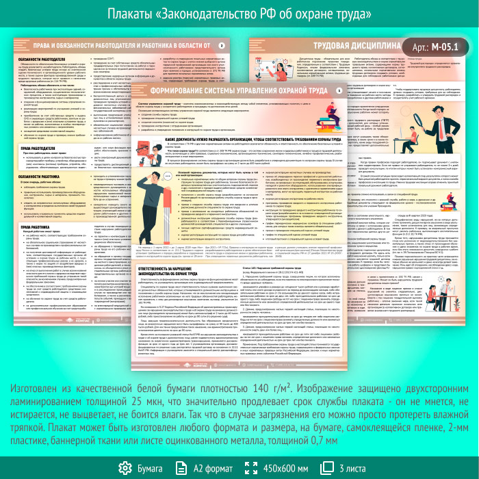 Плакаты «Законодательство РФ об охране труда» (М-05.1, ламинированная бумага, А2, 3 листа) в Альметьевске купить