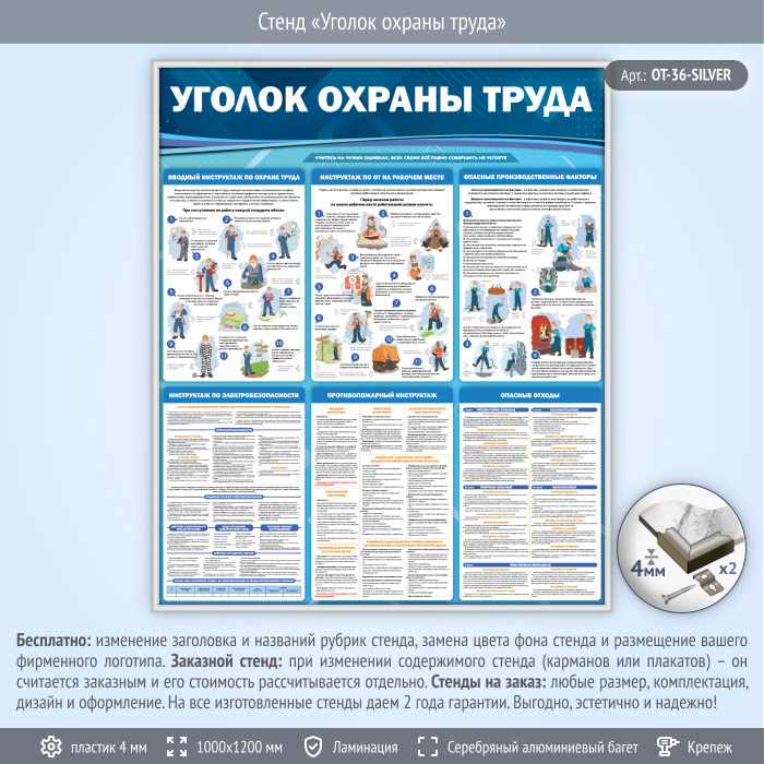 Стенд «Уголок охраны труда» (OT-36-SILVER) в Альметьевске купить