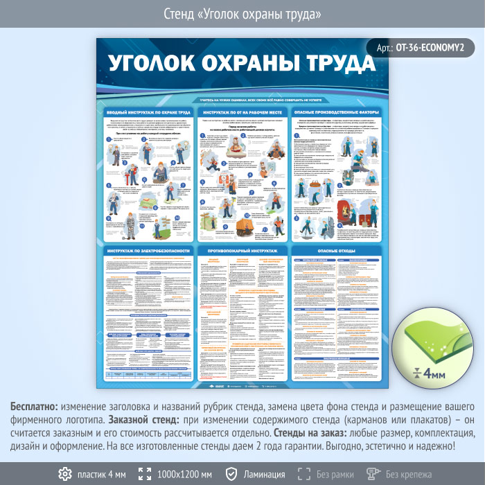 Стенд «Уголок охраны труда» (OT-36-ECONOMY2) в Альметьевске купить