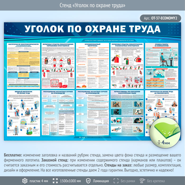 Стенд «Уголок по охране труда» (OT-37-ECONOMY2) в Альметьевске купить