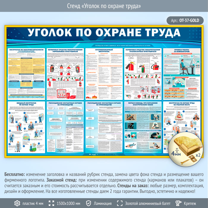 Стенд «Уголок по охране труда» (OT-37-GOLD) в Альметьевске купить