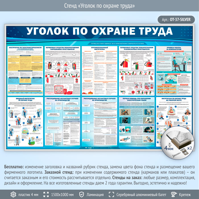Стенд «Уголок по охране труда» (OT-37-SILVER) в Альметьевске купить