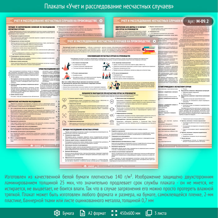 Плакаты «Учет и расследование несчастных случаев» (М-09.2, ламинированная бумага, А2, 3 листа) в Альметьевске купить