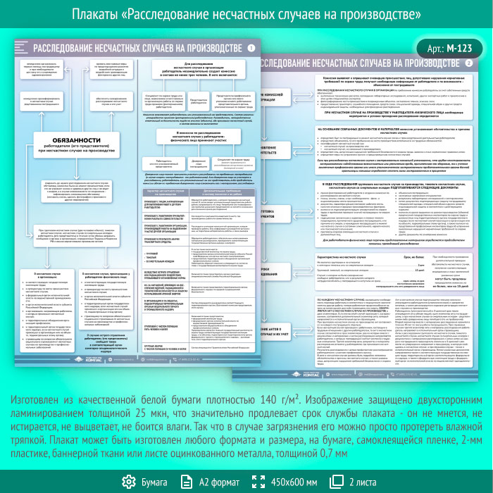 Плакаты «Расследование несчастных случаев на производстве» (М-123, ламинированная бумага, А2, 2 листа) в Альметьевске купить