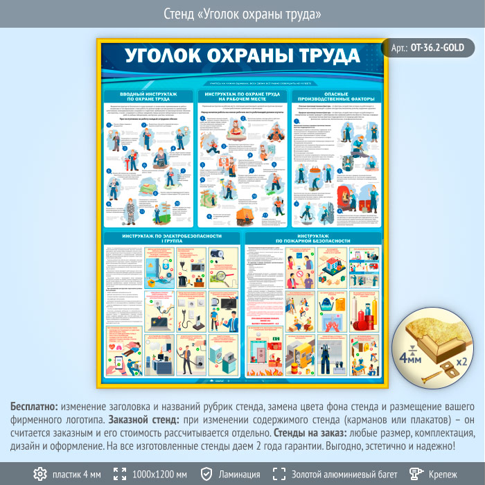 Стенд «Уголок охраны труда» (OT-36.2-GOLD) в Альметьевске купить
