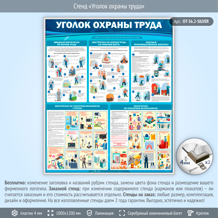 Стенд «Уголок охраны труда» (OT-36.2-SILVER) в Альметьевске купить