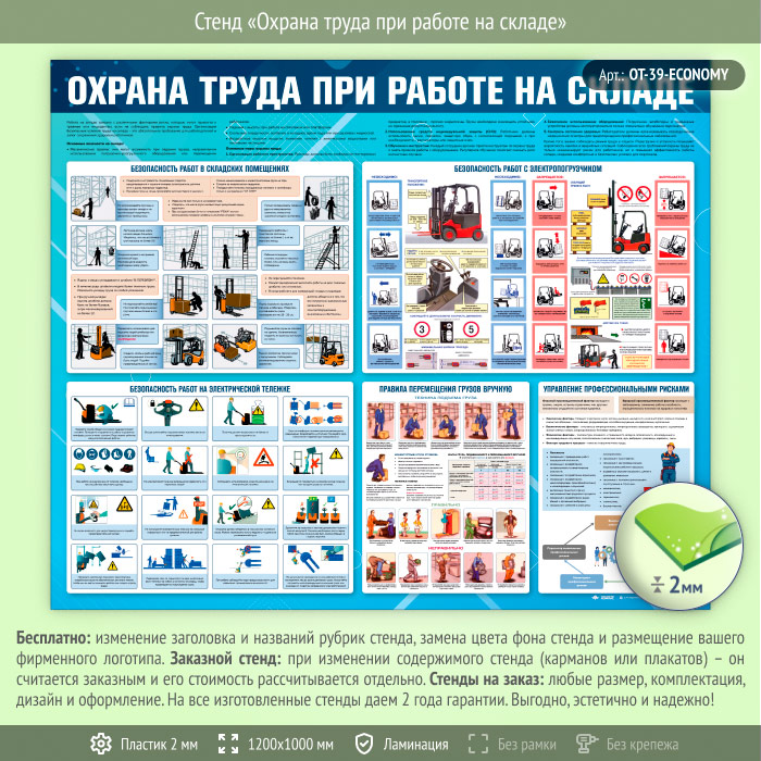 Стенд «Охрана труда при работе на складе» (OT-39-ECONOMY) в Альметьевске купить