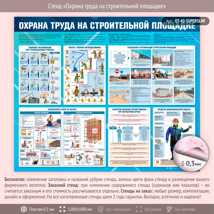 Стенд «Охрана труда на строительной площадке» (OT-40-SUPERSLIM) в Альметьевске купить