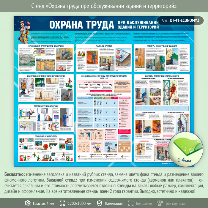 Стенд «Охрана труда при обслуживании зданий и территорий» (OT-41-ECONOMY2) в Альметьевске купить