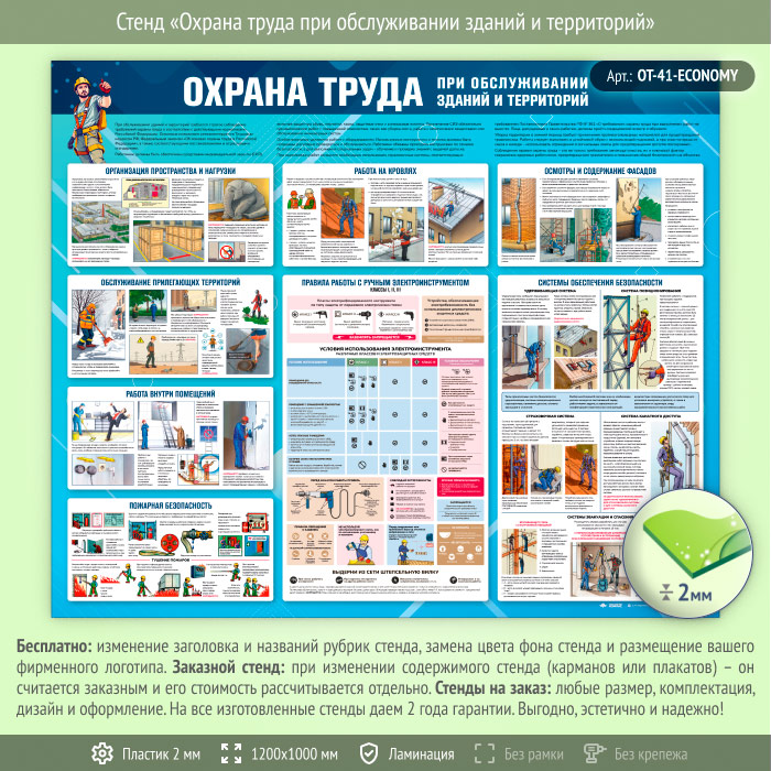 Стенд «Охрана труда при обслуживании зданий и территорий» (OT-41-ECONOMY) в Альметьевске купить