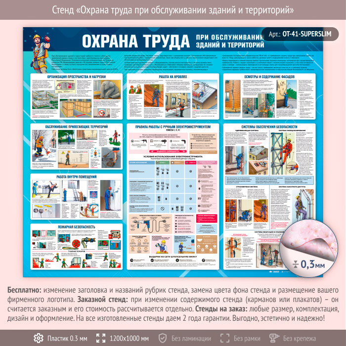Стенд «Охрана труда при обслуживании зданий и территорий» (OT-41-SUPERSLIM) в Альметьевске купить