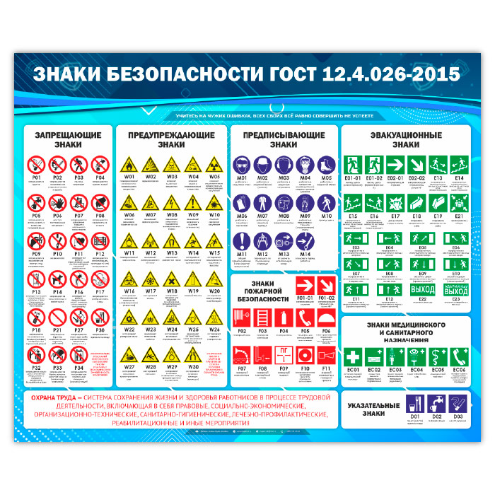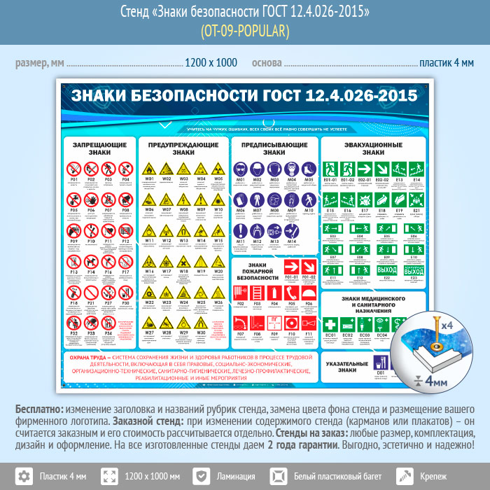 Стенд «Знаки безопасности ГОСТ 12.4.026-2015» (OT-09-POPULAR) в Альметьевске купить