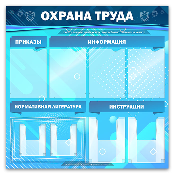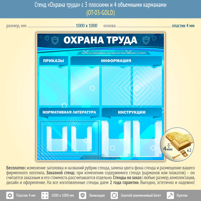 Стенд «Охрана труда» с 4 плоскими и 4 объемными карманами (OT-03-GOLD) в Альметьевске купить